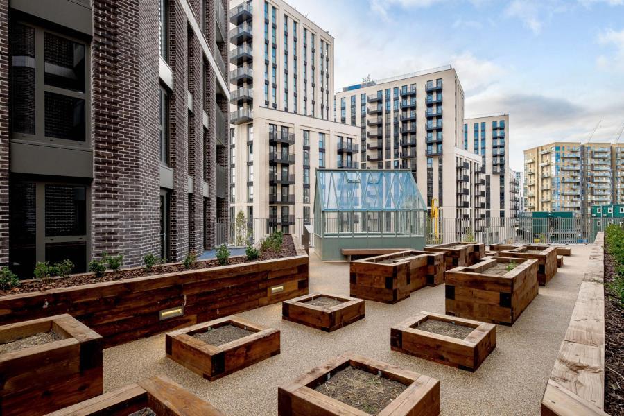 Shared facilities include a podium level play area with a number of activities for children and roof terrace with views of London and Wembley Stadium. Residents will also have access to a club house, BBQ area, allotments and a one acre garden.