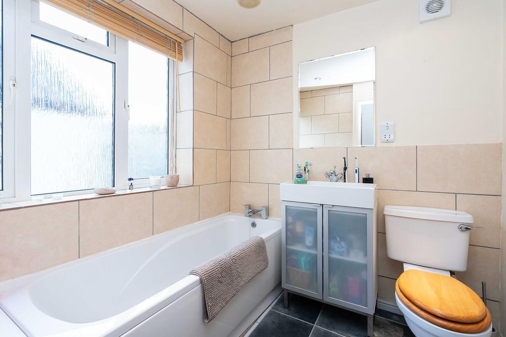 An internal hallway provide access to the stairs leading up to the first floor landing. As you can see from the measurements, the master bedroom is an excellent 12'1 ft with a built in storage cupboard. Bedrooms two and three are both rear aspect doubles. The family bathroom fitted with a modern white suite completes the first floor.
