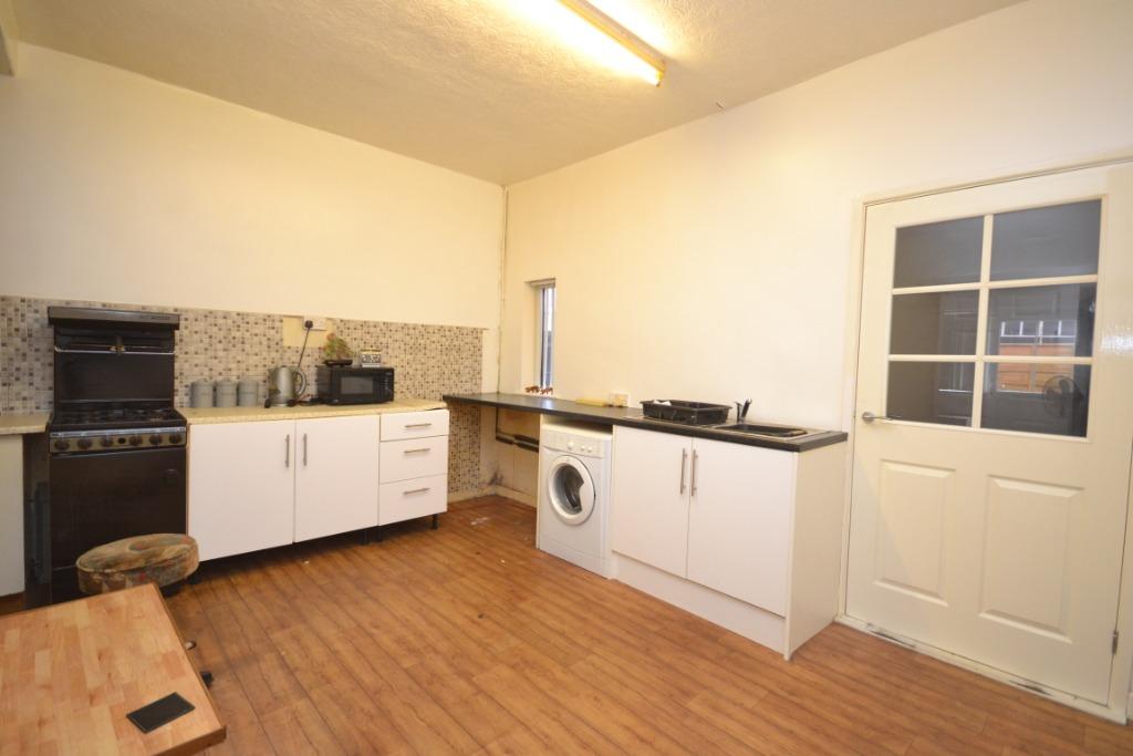 Range of base units, sink with drainer, radiator, window to rear elevation, ceiling light point, power points and access door to ground floor bedroom and wet room.