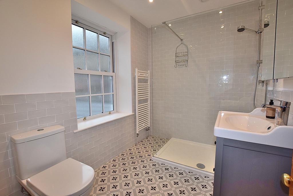 There is a shaver point, down lighting, extractor fan and a heated towel rail.