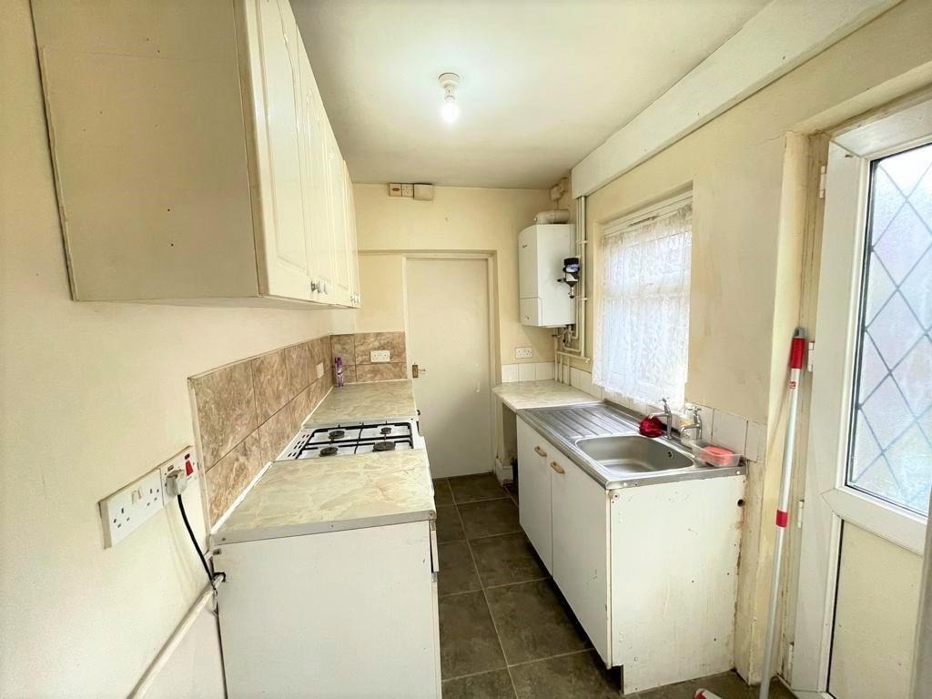 Having double glazed window to side, fitted kitchen with wall and base units with work surfaces over, stainless steel sink and drainer unit, gas cooker point, plumbing for washing machine, central heating boiler, ceiling light point and door to side.