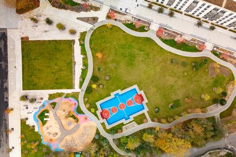 You will find a new community, designed with high levels of sustainability, with shared public spaces, tree lined streets, with a green central space including a basketball court and children's play area at its heart.